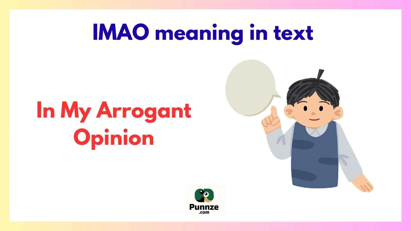 IMAO stands for “In My Arrogant Opinion,” used to express a humorous or exaggerated opinion in chats.